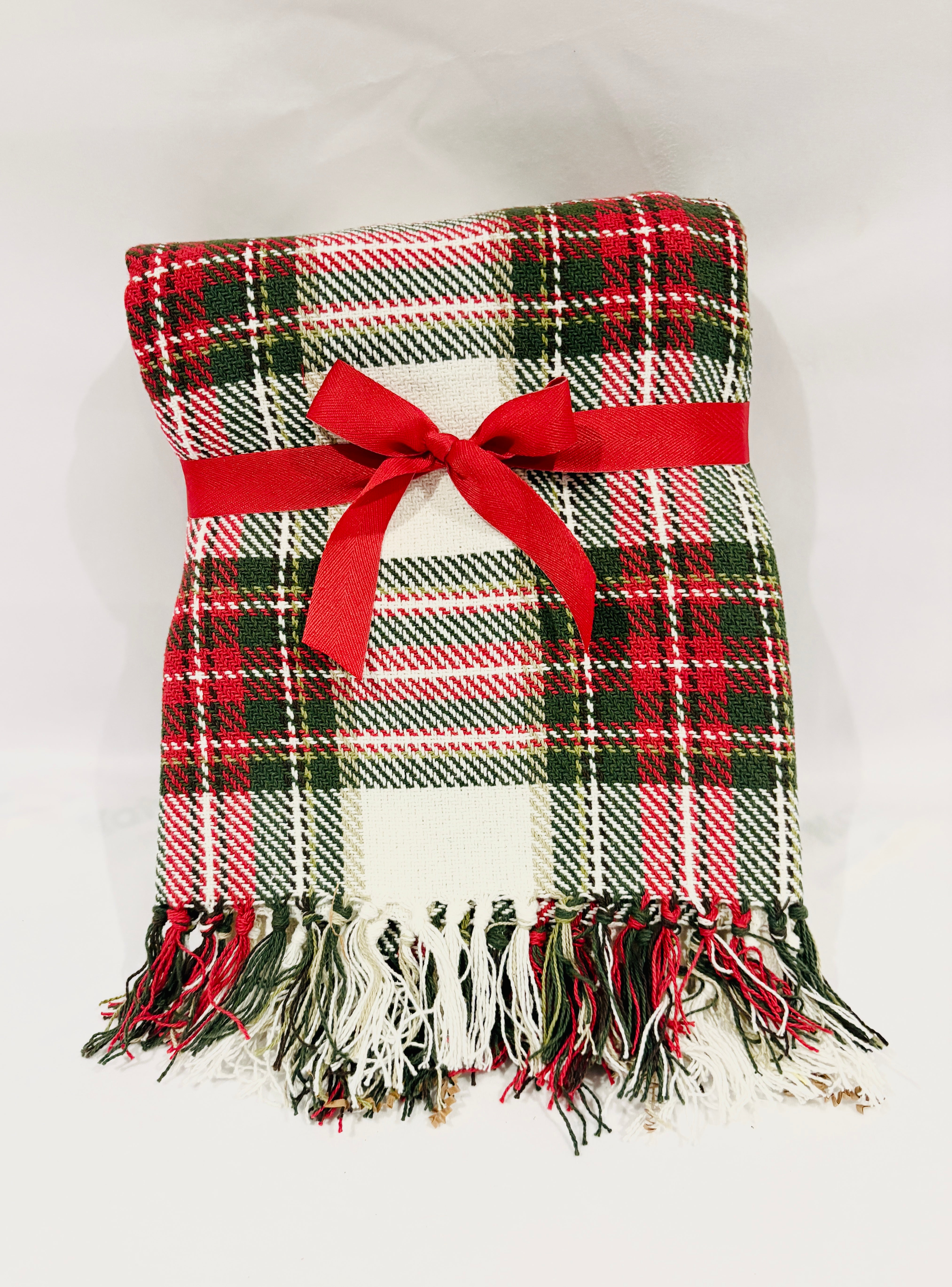 - Plaid throw blanket (100% cotton)